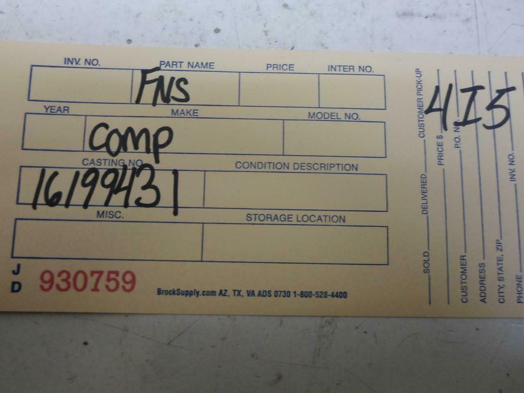 BIN: 4I5 | STOCK NUMBER: JD930759