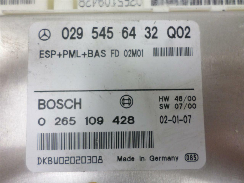 The unit is prepared, individually inspected, and quality control tested by our certified in-house mechanics. OEM ABS CONTROL MODULE for Mercedes-Benz E-CLASS 2000 2001 2002 & more – with the Part Number 0295456432. Order Now! ZappAuto is the one-stop-shop for replacement high quality used OEM automotive parts and accessories.