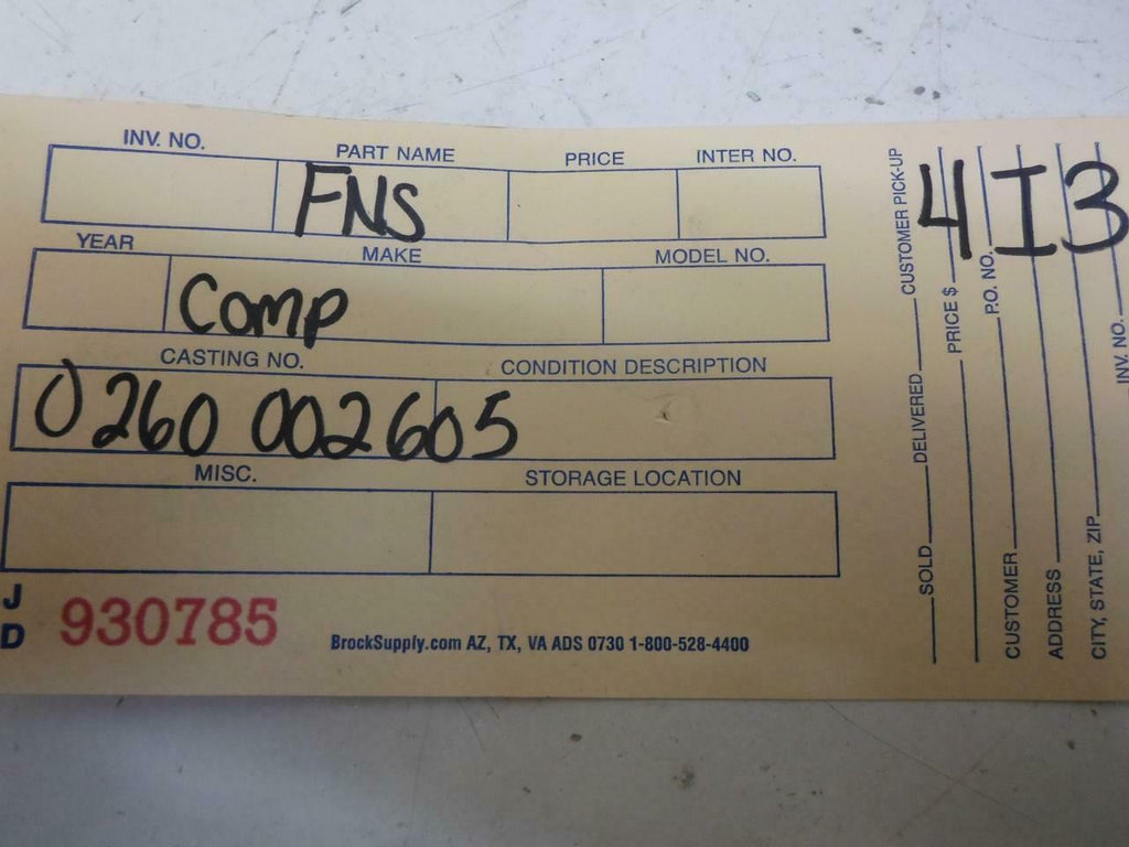 BIN: 4I3 | STOCK NUMBER: JD930785